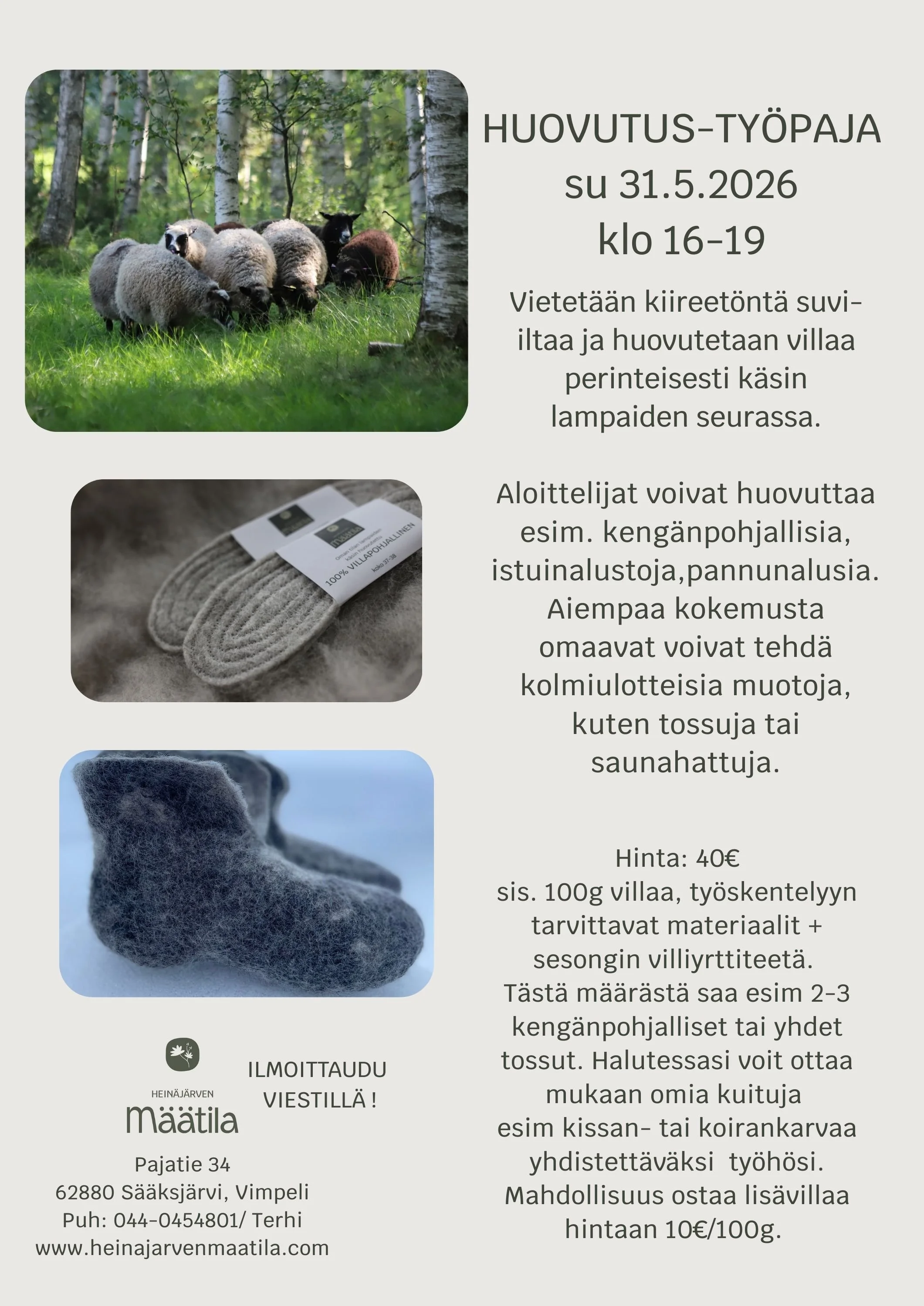 Nämä työpajat kesäkuussa. Jos taidon oppiminen kiinnostaa, mutta ajankohdat eivät sovi, ota rohkeasti yhteyttä omiin aikatauluihin sopivan työpajan järjestämiseksi! Jo ihan muutaman ihmisen pienryhmä riittää oman ajan varaamiseen.
