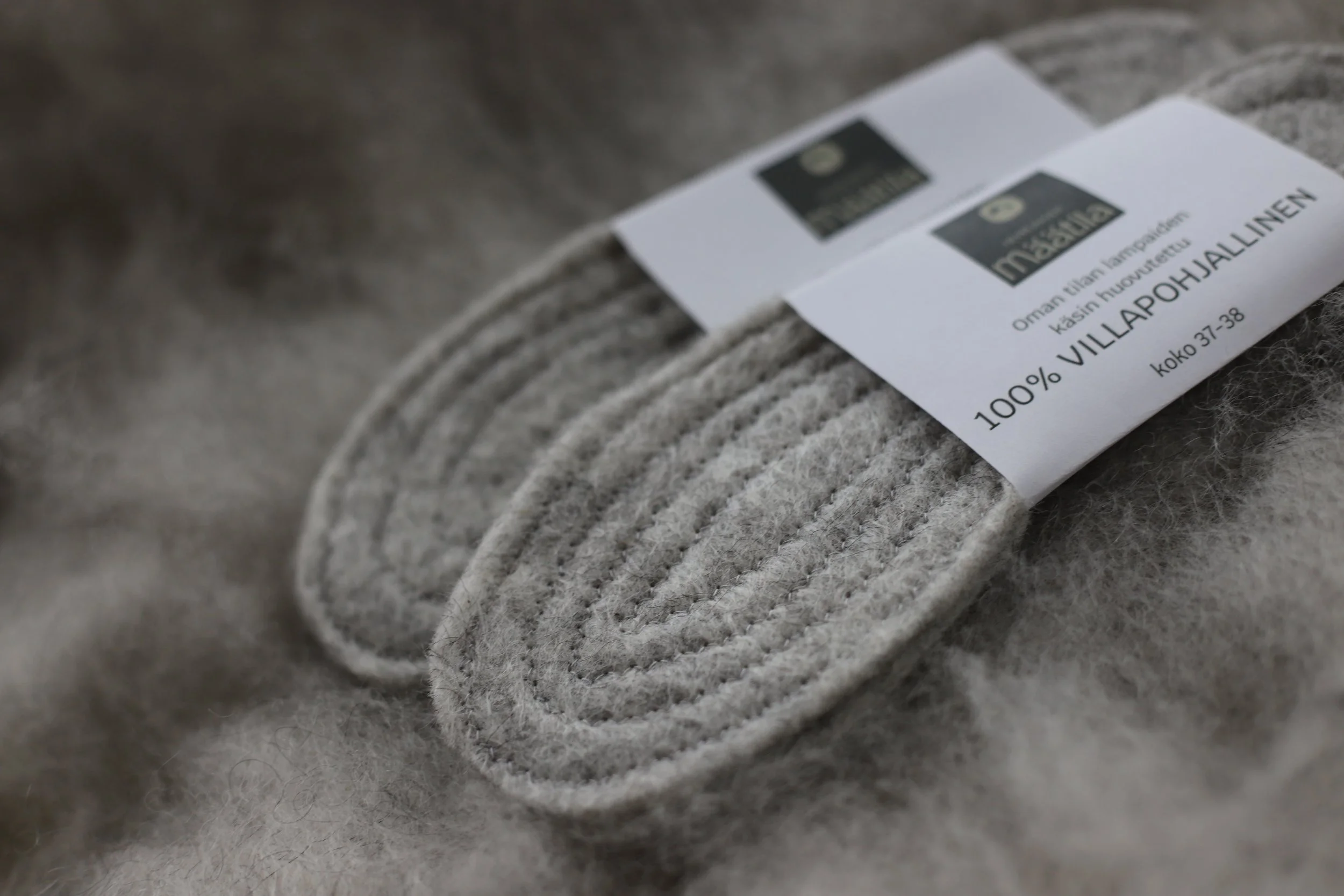 Käsinhuovutetut kengänpohjalliset lisäävät kenkien lämmittävyyttä ja käyttömukavuutta.